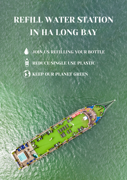 (Please note that Ha Long Bay management do not allow to bring the plastic bottle to Ha Long Bay so if you would like to recycle your bottle, the glass bottle or metal bottle is the good choice for you)