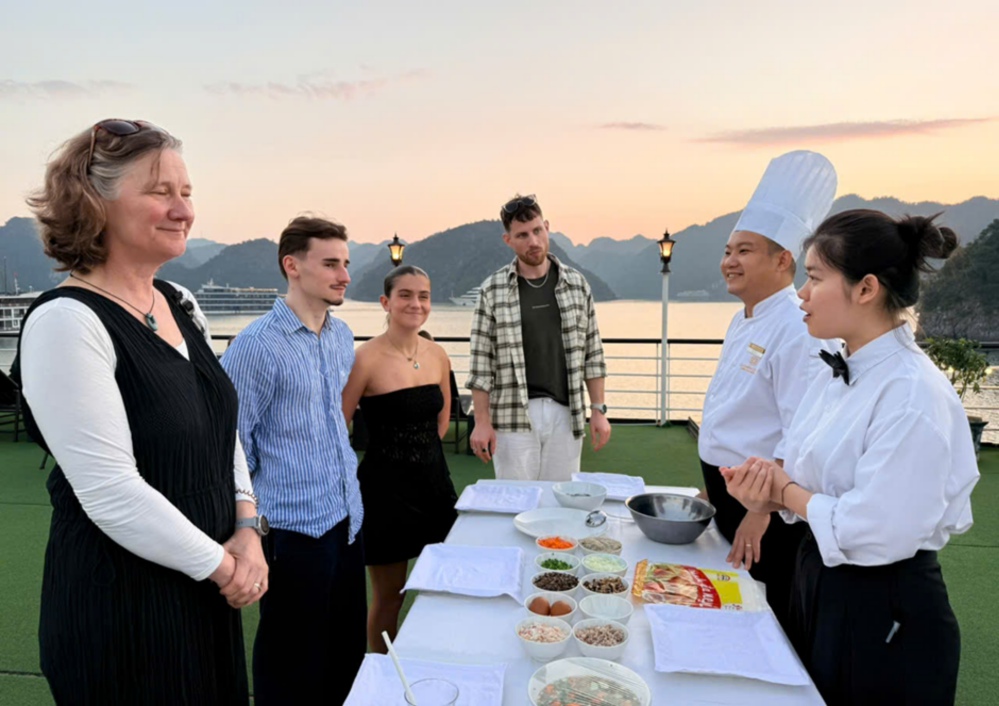 The cooking class on the sundeck offers guests an opportunity to discover the essence of Vietnamese cuisine. Under the guidance of the chef, visitors will enjoy a memorable cultural experience while preparing traditional seasonal dishes such as Hanoi fried spring rolls, floating rice dumplings, or Banh Chung.