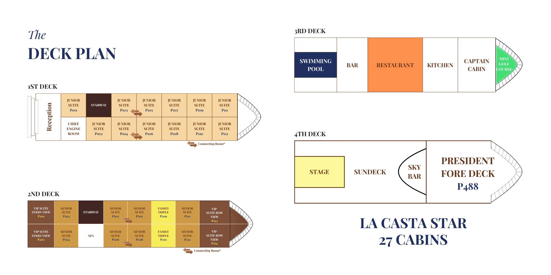 - President Fore Deck – The ultimate luxury residence with exclusive foredeck terrace and unrivaled panoramic views.