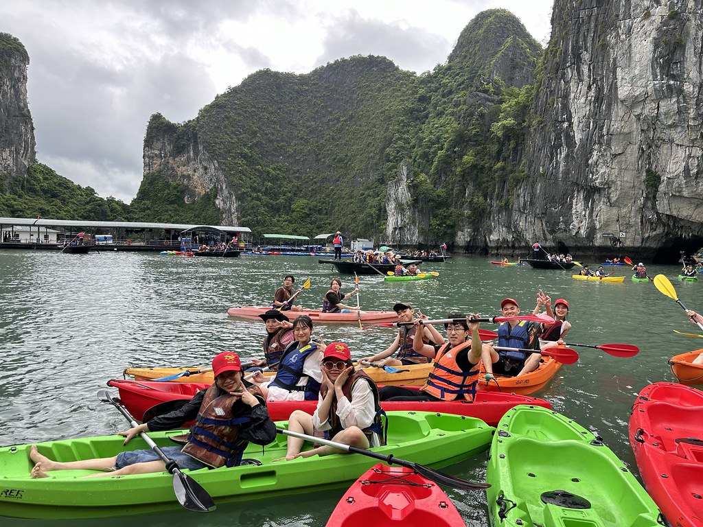 One of the most popular activities when exploring Lan Ha Bay. Visitors paddle their own kayaks through low stone arches and into secluded lagoons surrounded by majestic limestone mountains, creating a peaceful space that feels almost completely separated from the outside world.